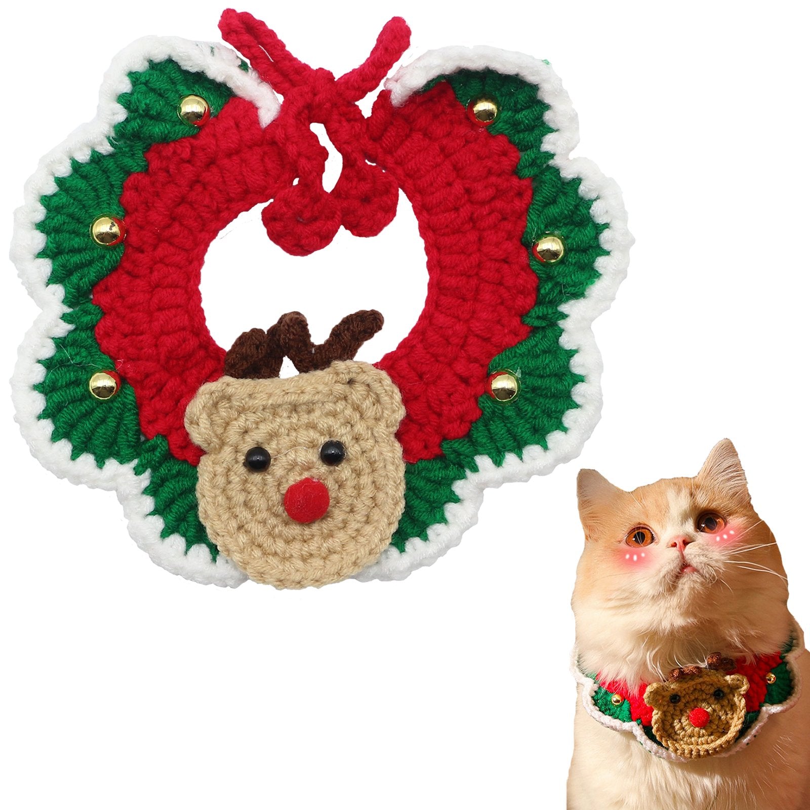Uniqicon Santa Cat Hat Christmas Costume Dogs Hats Costumes Pets Scarf Outfit Xmas Suit Handmade Knitted Cosplay Pet Clothes Suitable for Large, Medium, and Small Breed